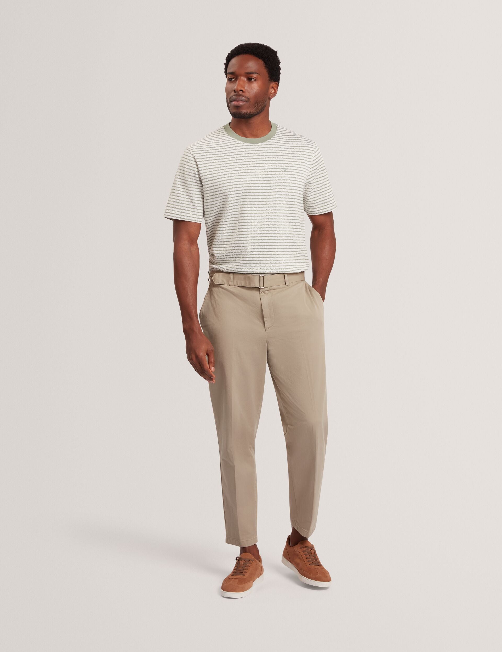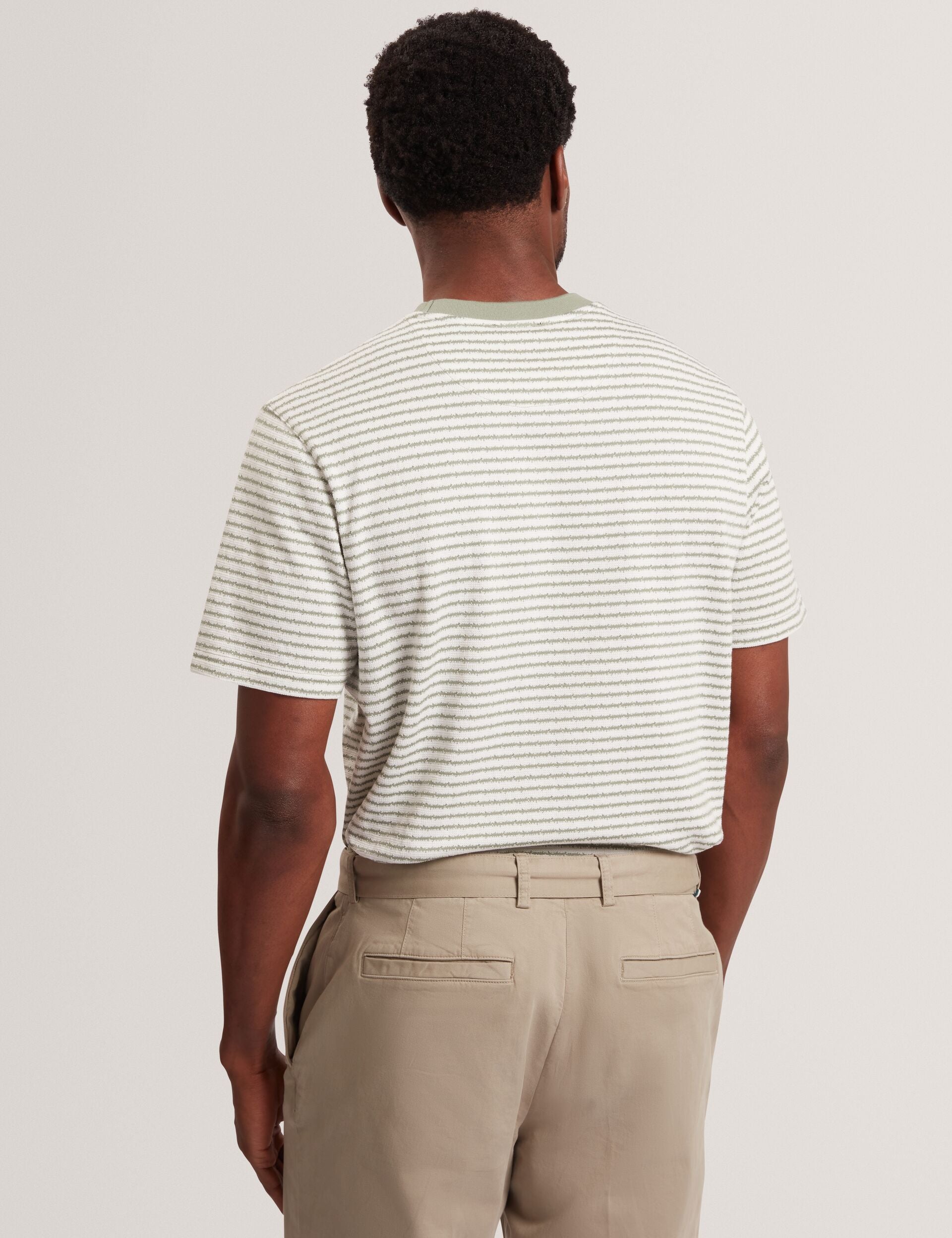 A striped t-shirt is a timeless staple that works in every wardrobe, and VEXRIN offers a modern twist on this classic, adding textural stripes and a contrast neckline to its knitted cotton fabric.