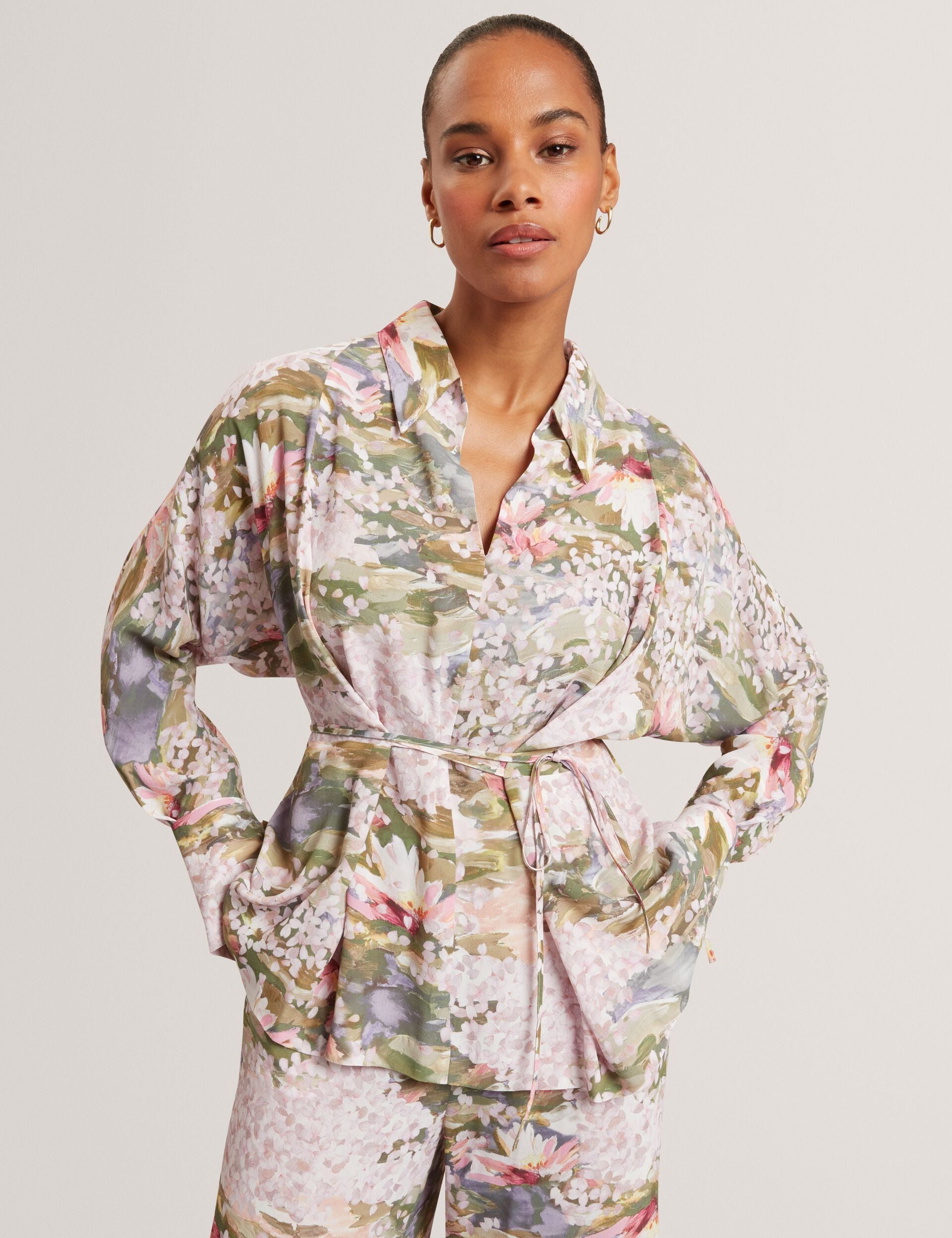 Lilypad Print Tie Detail Long Sleeve Blouse
