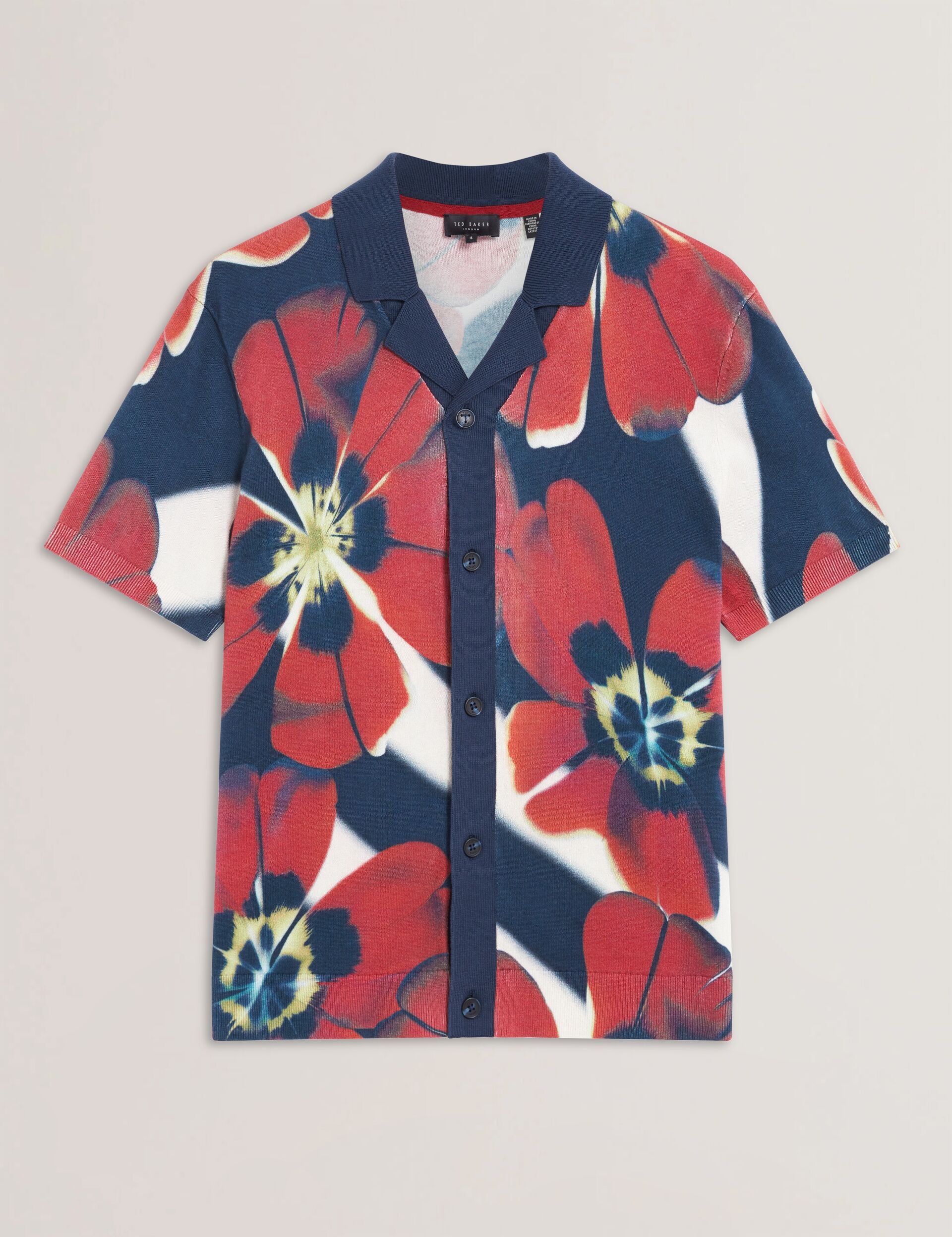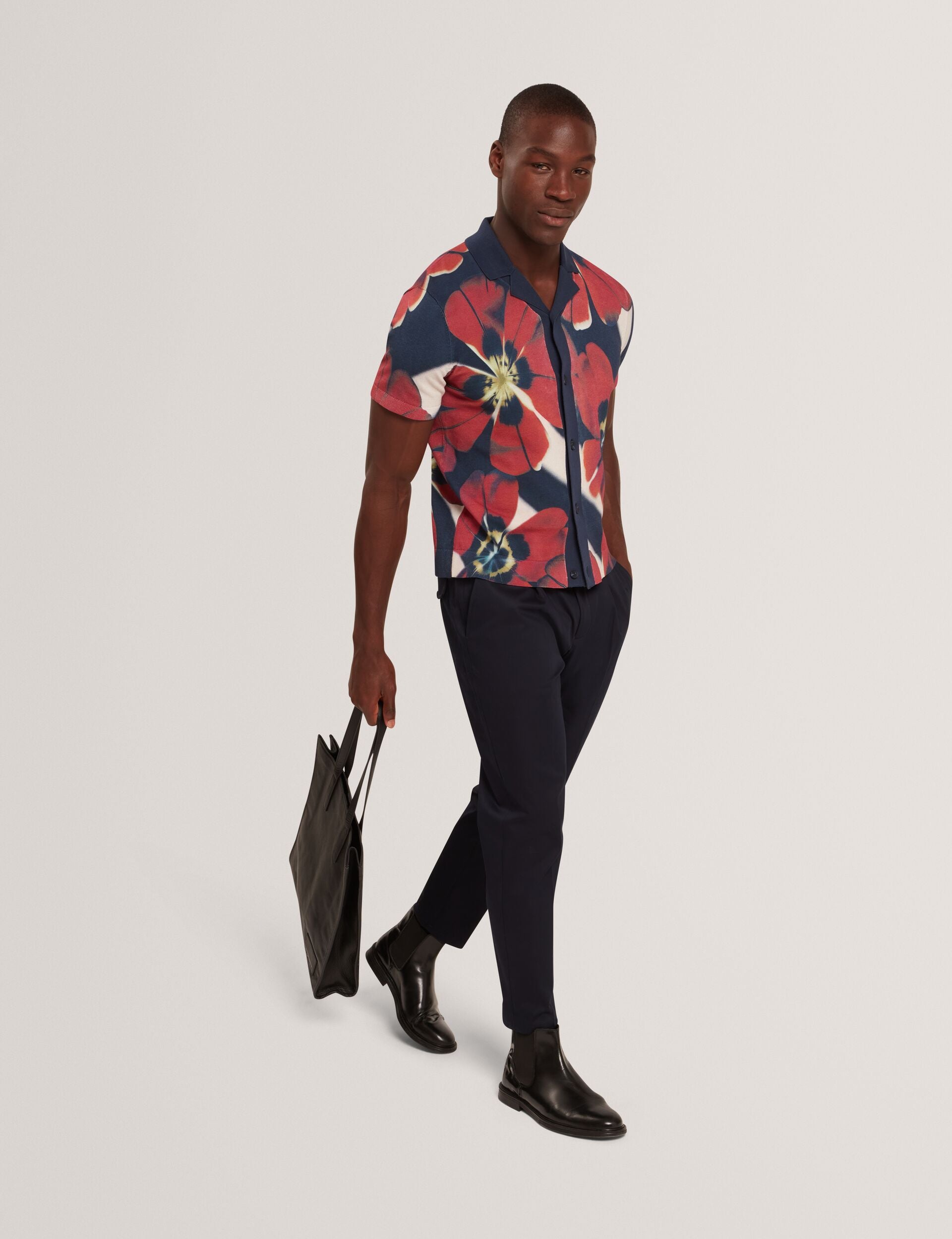 WYRIC takes smart-casual dressing in its stride. Crafted from a fine cotton knit with a laid-back revere collar, this short sleeve shirt features our bold red blooms print that exudes contemporary style.