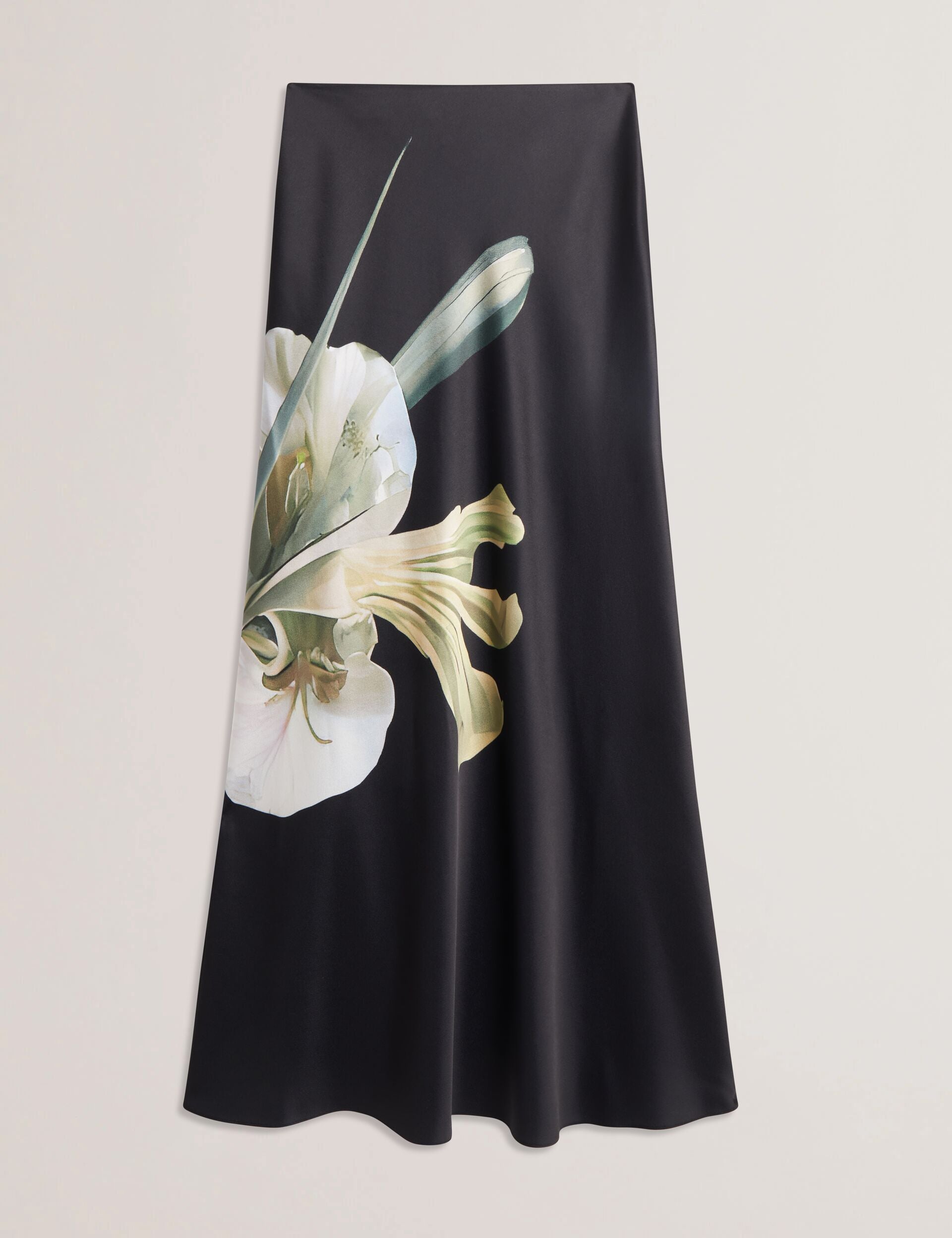 Floral Print Detail Satin Maxi Skirt